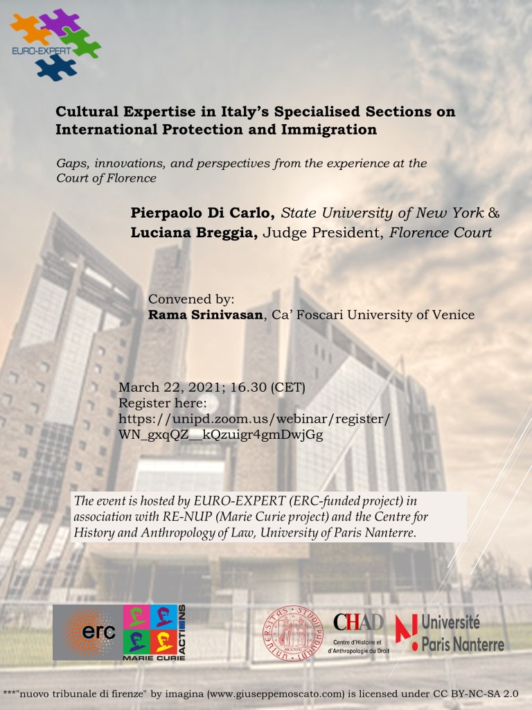 Reminder: TALK on 22 March 2021 – Cultural Expertise in Italy’s Specialised Sections on International Protection and Immigration
