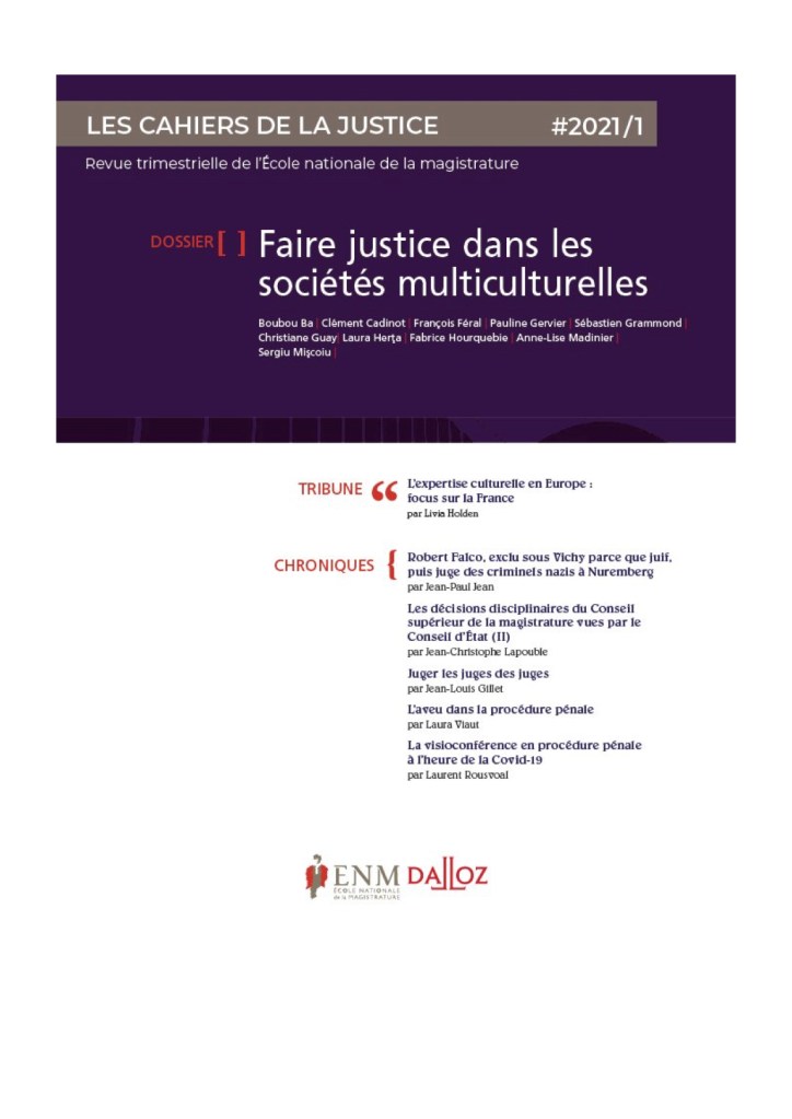 A new publication: Faire Justice dans les Sociétés Multiculturelles, Special Issue of Les Cahiers de la JusticeRevue Trimestrielle de l’École Nationale de la Magistrature, 2021/01, was released.